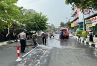 LAMONGAN inforakyat24jam com Unit Penegakan Hukum (Gakkum) Satlantas Polres Lamongan Polda Jatim menunjukkan kesigapan dan aksi kemanusiaan dalam merespons kejadian tumpahan cairan solar…