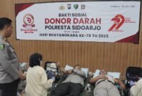 SIDOARJO inforakyat24jam com Dalam rangkaian kegiatan peringatan Hari Bhayangkara ke-79, Polresta Sidoarjo Polda Jatim mengadakan bakti sosial donor darah. Kegiatan donor darah dibuka…