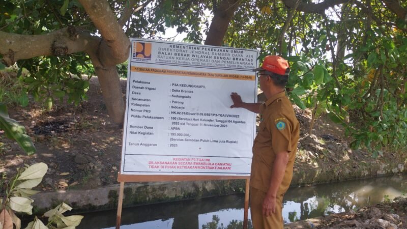 Sidoarjo inforakyat24jam com , Desa Kedungsolo, Kecamatan Porong, Kabupaten Sidoarjo, menjadi sorotan publik kegiatan Program Percepatan Peningkatan Tata Guna Air Irigasi (P3 TGAI) di desa tersebut diduga sarat dengan kolusi, korupsi, dan nepotisme (KKN). Program yang bertujuan untuk meningkatkan efisiensi penggunaan air irigasi ini memiliki nilai kontrak sebesar Rp195.000.000 dan menggunakan sumber dana dari APBN.