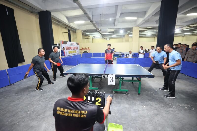 SURABAYA inforakyat24jam com – Kepolisian Daerah Jawa Timur menggelar Tenis Meja Kapolda Cup tahun 2025 dalam rangka Hari Bhayangkara ke-79 di Gedung Dojo Mapolda Jatim, Kamis (19/6/25).