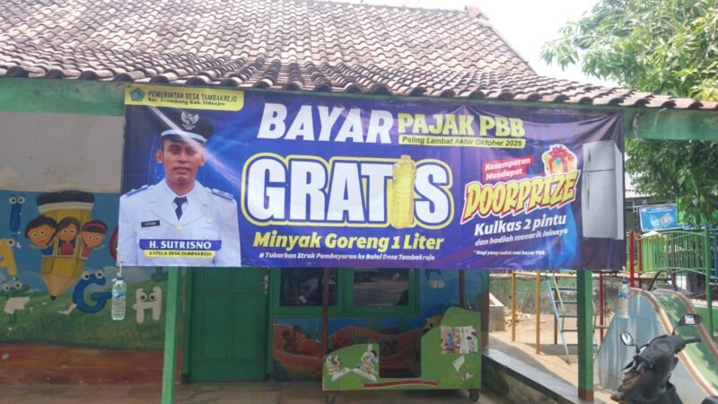 Sidoarjo inforakyat24jam com Pemerintah Desa Tambak Rejo, Kecamatan Krembung, Kabupaten Sidoarjo, saat ini tengah menggiatkan sosialisasi pembayaran pajak kepada warganya. Sosialisasi ini dilakukan melalui berbagai cara, termasuk penyebaran brosur dan pemasangan banner di depan balai desa.